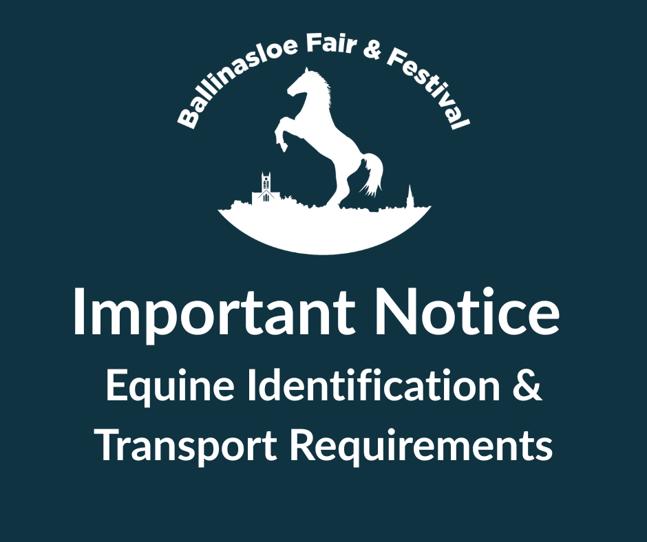 As part of the safe and responsible running of the Ballinasloe October Fair, it is essential that all visitors bringing equines (horses, ponies, and donkeys) are aware of the requirements surrounding Equine Identification and Traceability.